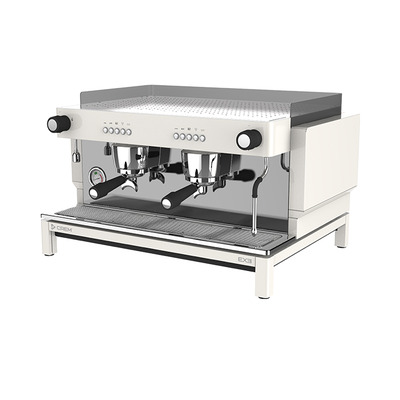A compact two-group Onyx version with volumetric dosing control, automatic water filling, and a 6L copper boiler. Features heat exchangers per group, one steam wand, and customizable group height options.